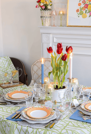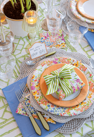 Our newest collection brings the colors of the season to life with prints & patterns inspired by new blooms & classic ceramics. Pops of bamboo green, bluebell & melon set the table for warm afternoons that turn into evenings full of laughter.