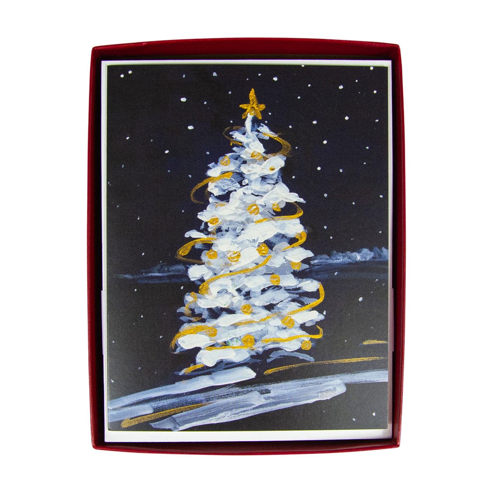 Snowy Tree In The Night Classic Boxed Christmas Cards - includes 15 cards & envelopes