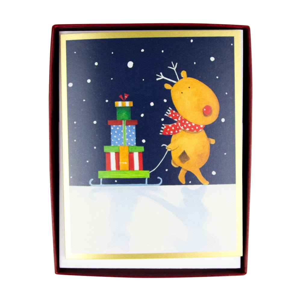 Please note: Caspari boxed Christmas cards come with a pre-printed message in the card interior. We cannot personalize these designs.