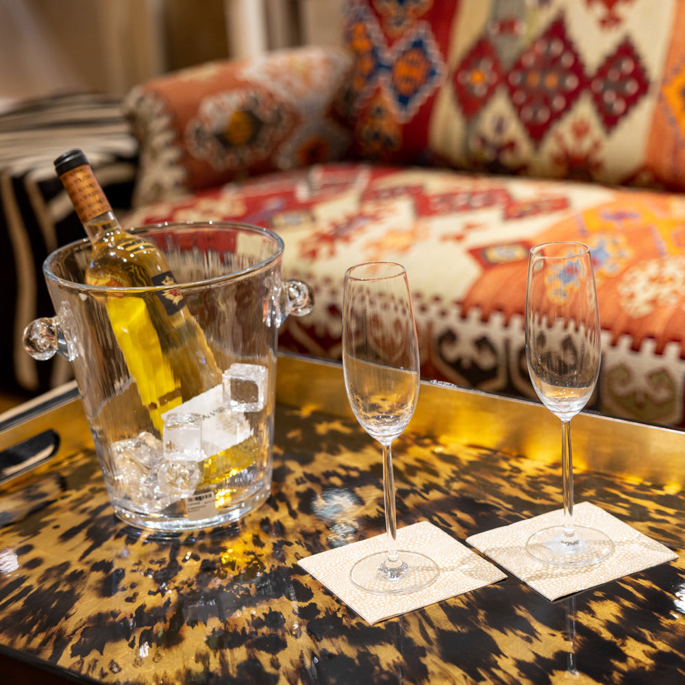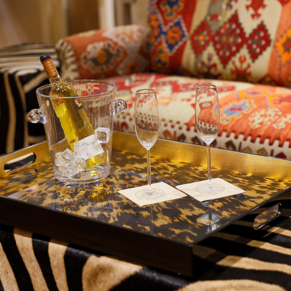 These high-quality, limited edition trays are timeless accents for your home. Perfect for putting the finishing touch on your table setting, serving guests, or creating a purely decorative display, they are highly versatile and beautiful. Featuring artwork from some of our best-selling artists and museum collections from around the world, they are a stunning and unique way to display art in your home. Their shining finish shows the true beauty of the original artworks and ensures a durable surface. Each tray is handmade in Vietnam and those with golden or silver framing or accents utilize genuine gold or silver leaf. Caspari Lacquer Trays are an elegant and thoughtful gift for nearly any occasion.