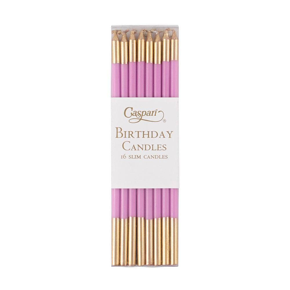 Available in a variety of festive colors, our charming slim birthday candle packs range from cool to hot, primary to pastel, and even tropical colors. Each container includes 16 slim-style birthday candles that give cakes and cupcakes elegant and whimsical flair. Our candles feature through-color so you can celebrate colorfully for birthdays and more special occasions.