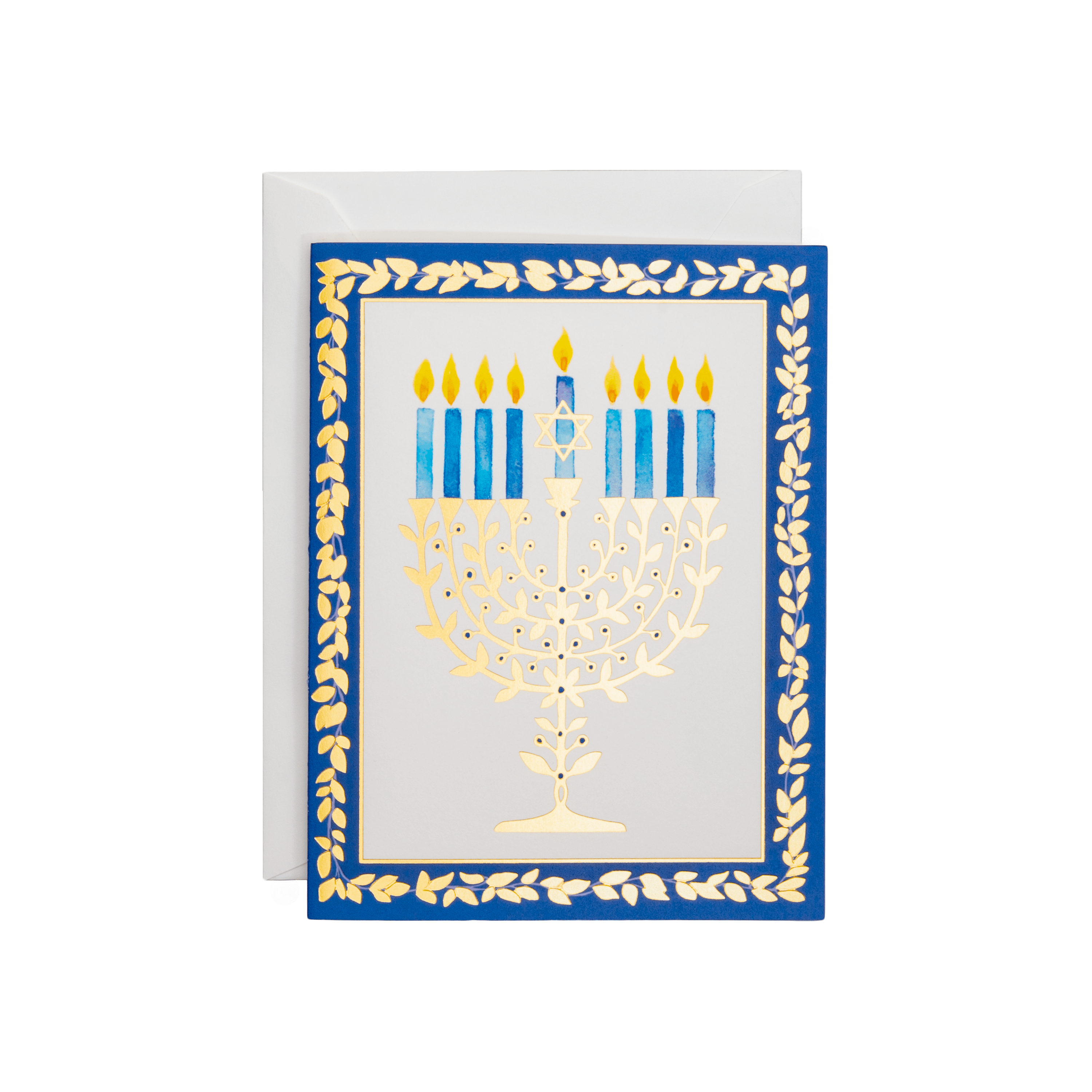 Gold Leaves Menorah Foil Classic Boxed Christmas Cards - includes 10 cards & envelopes