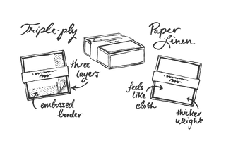 Caspari Paper Boxed Cocktail Napkins are offered two ways: Triple-ply Tissue and Paper Linen.