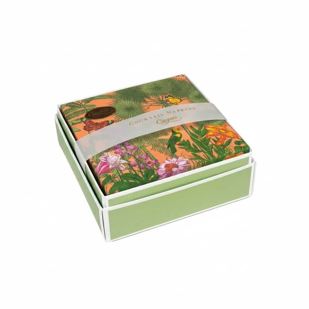 Caspari triple-ply napkins are both striking in design and durable in function. Thoughtfully designed to elevate any occasion, they feature artwork and designs from museums and artist around the world. Each is made of triple-ply tissue and printed in Germany with non-toxic, water-soluble dyes and food-safe ink. They are FSC-certified and made using environmentally-conscious raw materials, which ensures they are both biodegradable and compostable. Our napkins bring eco-friendly style and convenience to your tabletop. 40 napkins included in an eco-friendly gift box with acetate lid.
