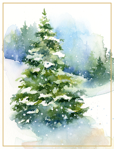 Evergreens In Snowy Field Large Boxed Christmas Cards - includes 15 cards & envelopes