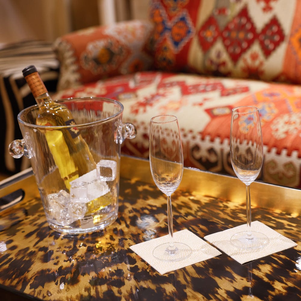 These high-quality, limited edition trays are timeless accents for your home. Perfect for putting the finishing touch on your table setting, serving guests, or creating a purely decorative display, they are highly versatile and beautiful. Featuring artwork from some of our best-selling artists and museum collections from around the world, they are a stunning and unique way to display art in your home. Their shining finish shows the true beauty of the original artworks and ensures a durable surface. Each tray is handmade in Vietnam and those with golden or silver framing or accents utilize genuine gold or silver leaf. Caspari Lacquer Trays are an elegant and thoughtful gift for nearly any occasion.