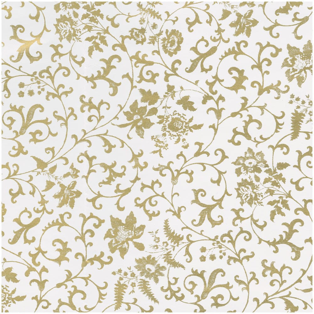 Flora Scrollwork White/Gold Roll Wrap 30 Inch X 8Ft-2 Inch Core