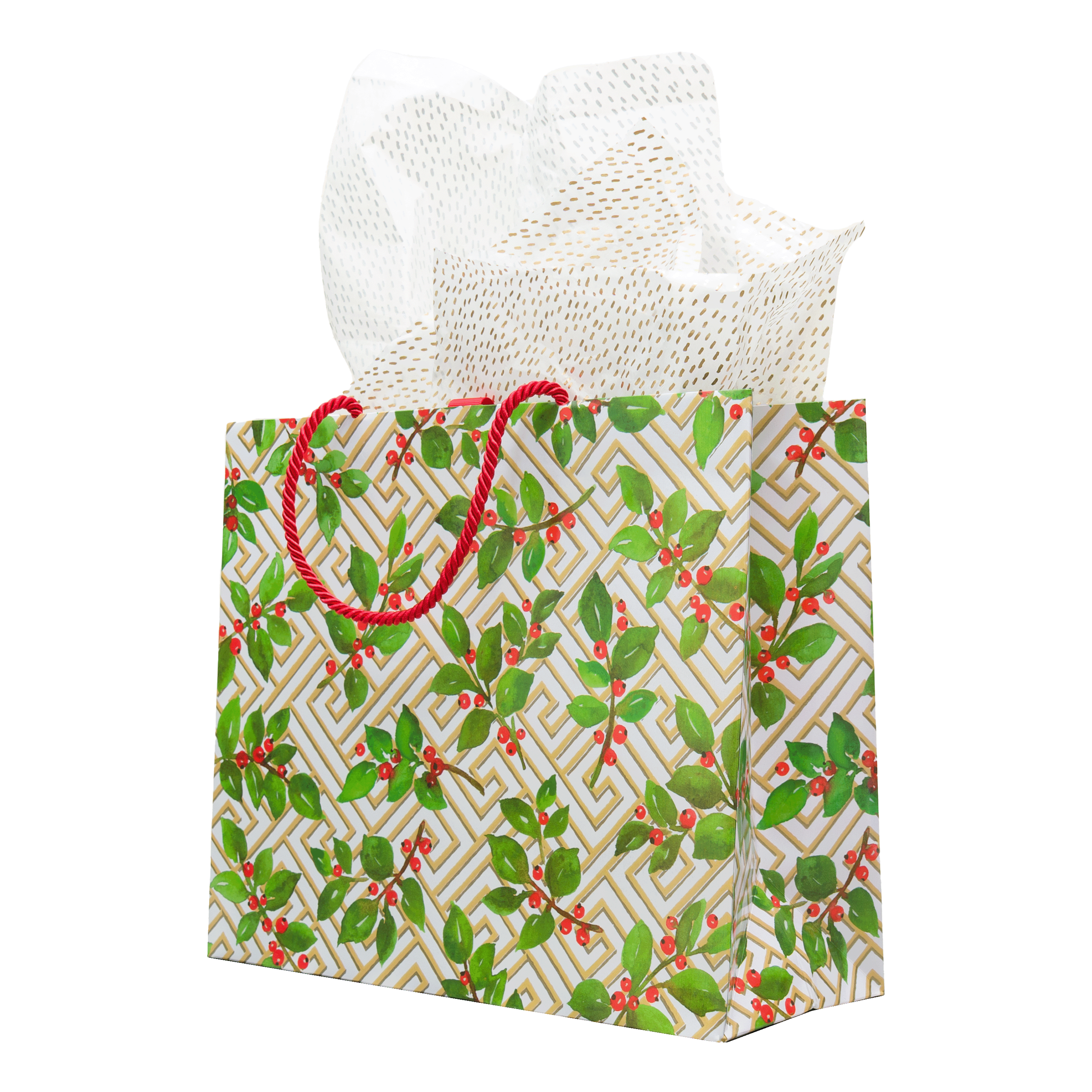 Holly And Fretwork Gift Bags - includes 1 Gift Bags