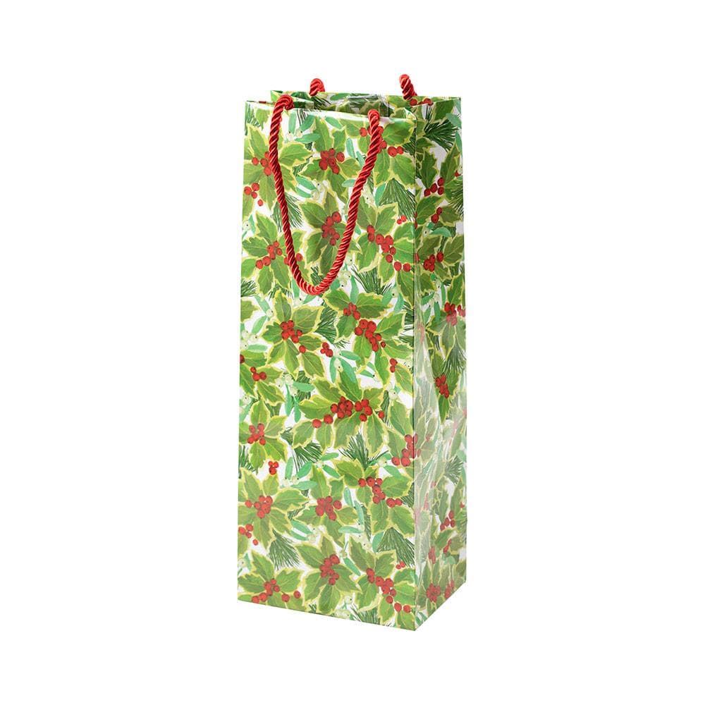 Holly And Mistletoe White Bottle Bag 5 X 3 1/2 X 13