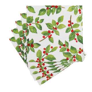 Painted Holly White Recycled Cocktail Napkins - includes 20 Cocktail Napkins
