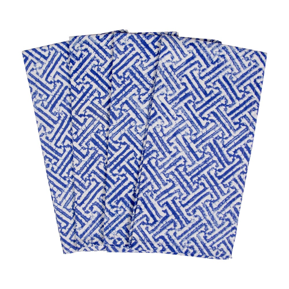 Fretwork Blue/White Fabc Cotton Napkin-Set Of 4