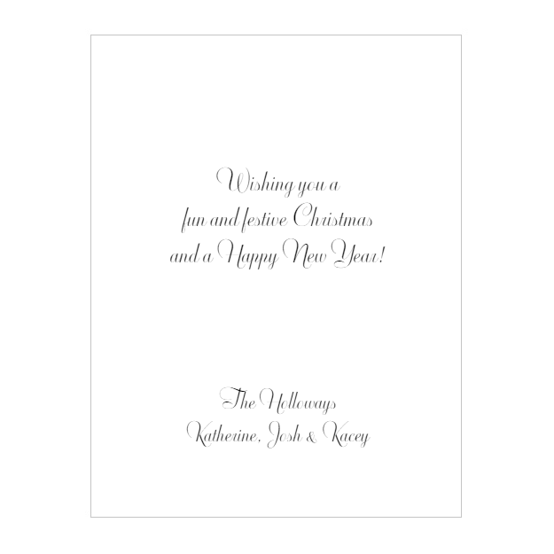 A departure from the classic Christmas card, these custom folded photo cards keep the tradition of holiday card sending alive in a contemporary style. All our photo cards are designed to look stunning with photos in either full color or black & white. Optional personalized envelopes make adding a return address easy and elegant.