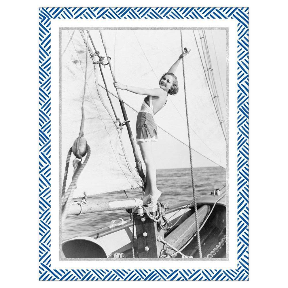 Blue Foil Dash Border Portrait Folded Holiday Photo Cards