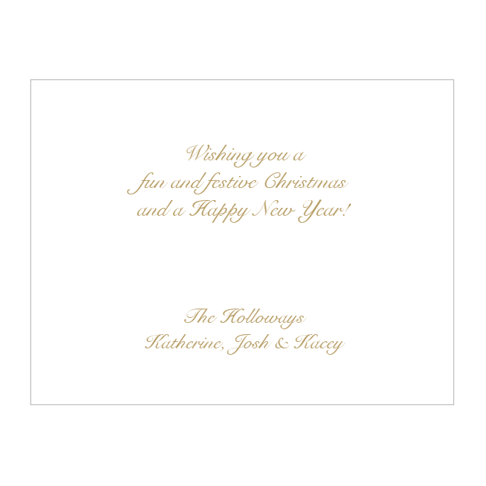 A departure from the classic Christmas card, these custom folded photo cards keep the tradition of holiday card sending alive in a contemporary style. All our photo cards are designed to look stunning with photos in either full color or black & white. Optional personalized envelopes make adding a return address easy and elegant.