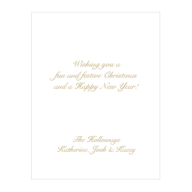 A departure from the classic Christmas card, these custom folded photo cards keep the tradition of holiday card sending alive in a contemporary style. All our photo cards are designed to look stunning with photos in either full color or black & white. Optional personalized envelopes make adding a return address easy and elegant.