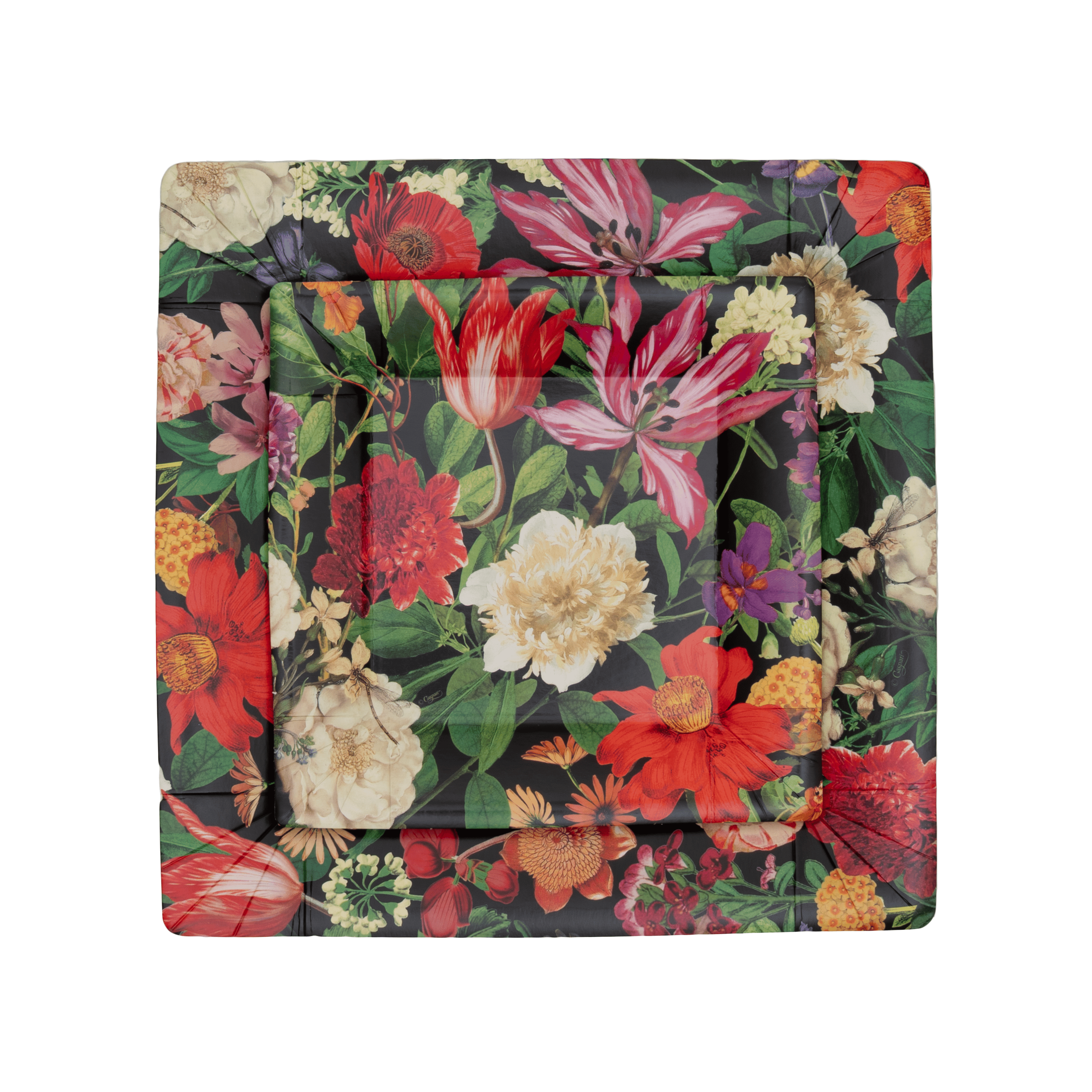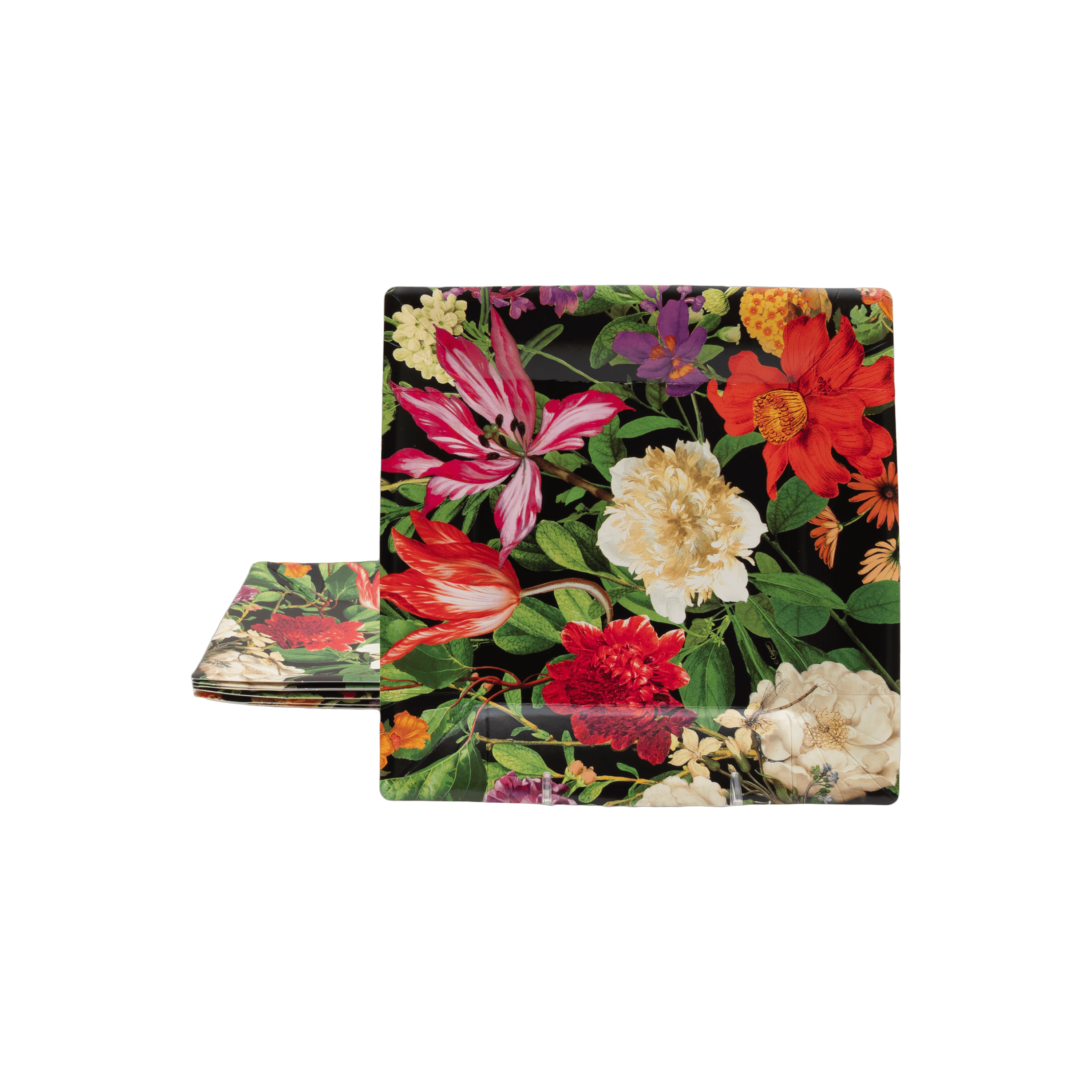 Dutch Floral Black Square Paper Salad & Dessert Plates - includes 8 Paper Salad & Dessert Plates
