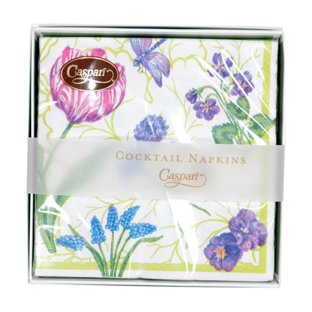 Caspari triple-ply napkins are both striking in design and durable in function. Thoughtfully designed to elevate any occasion, they feature artwork and designs from museums and artist around the world. Each is made of triple-ply tissue and printed in Germany with non-toxic, water-soluble dyes and food-safe ink. They are FSC-certified and made using environmentally-conscious raw materials, which ensures they are both biodegradable and compostable. Our napkins bring eco-friendly style and convenience to your tabletop. 40 napkins included in a gilded gift box with acetate lid. Caspari boxed cocktail napkins make an excellent and useful gift item.