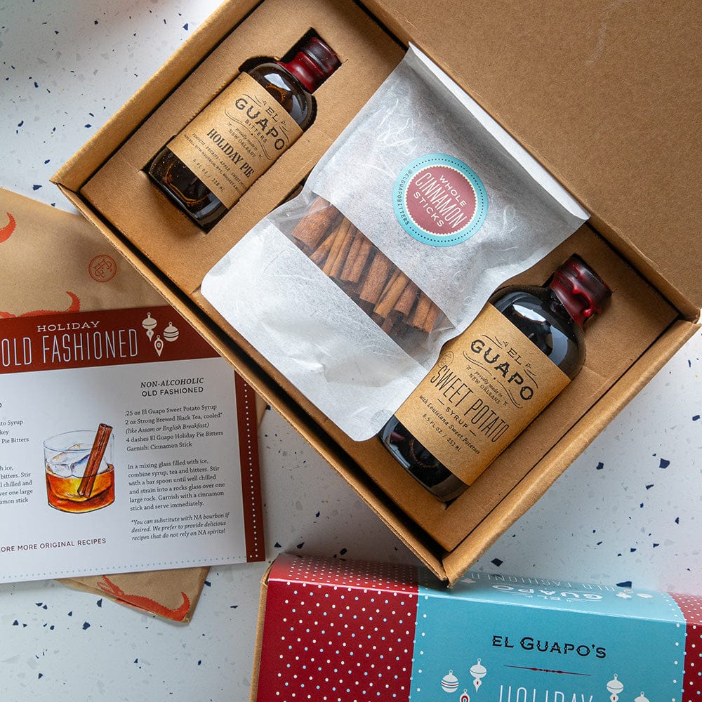 Inside the kit you’ll find an 8.5 oz bottle of Louisiana Sweet Potato Syrup, a 4 oz bottle of Holiday Pie Bitters and festive cinnamon sticks for garnish. A custom recipe card is included and provides options for full strength, low ABV and even a spirit free Old Fashioned. Add your favorite whiskey and stir with ice for a classic take, or keep it spirit free and let the bitters and syrup do the heavy lifting. The balance is perfected so your drink tastes right every time, and one kit makes up to 34 cocktails, which is our way of saying - invite your friends!