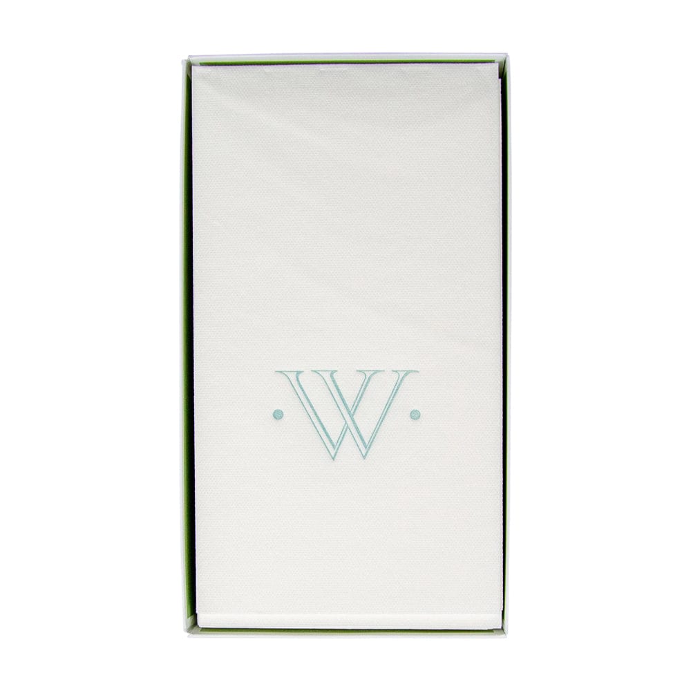 Caspari Antique Initial-Robin's Egg Paper Linen Boxed Guest Towel 24-In