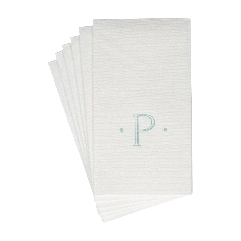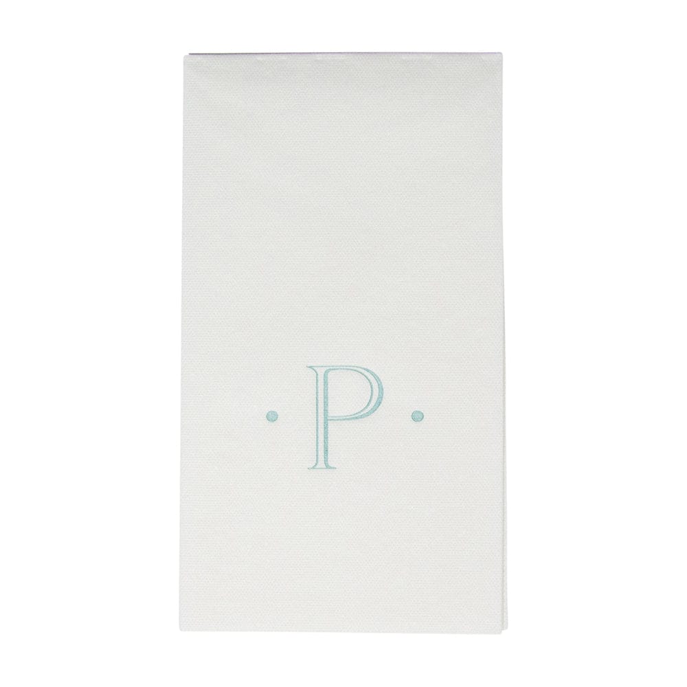 Caspari Antique Initial-Robin's Egg Paper Linen Boxed Guest Towel 24-In