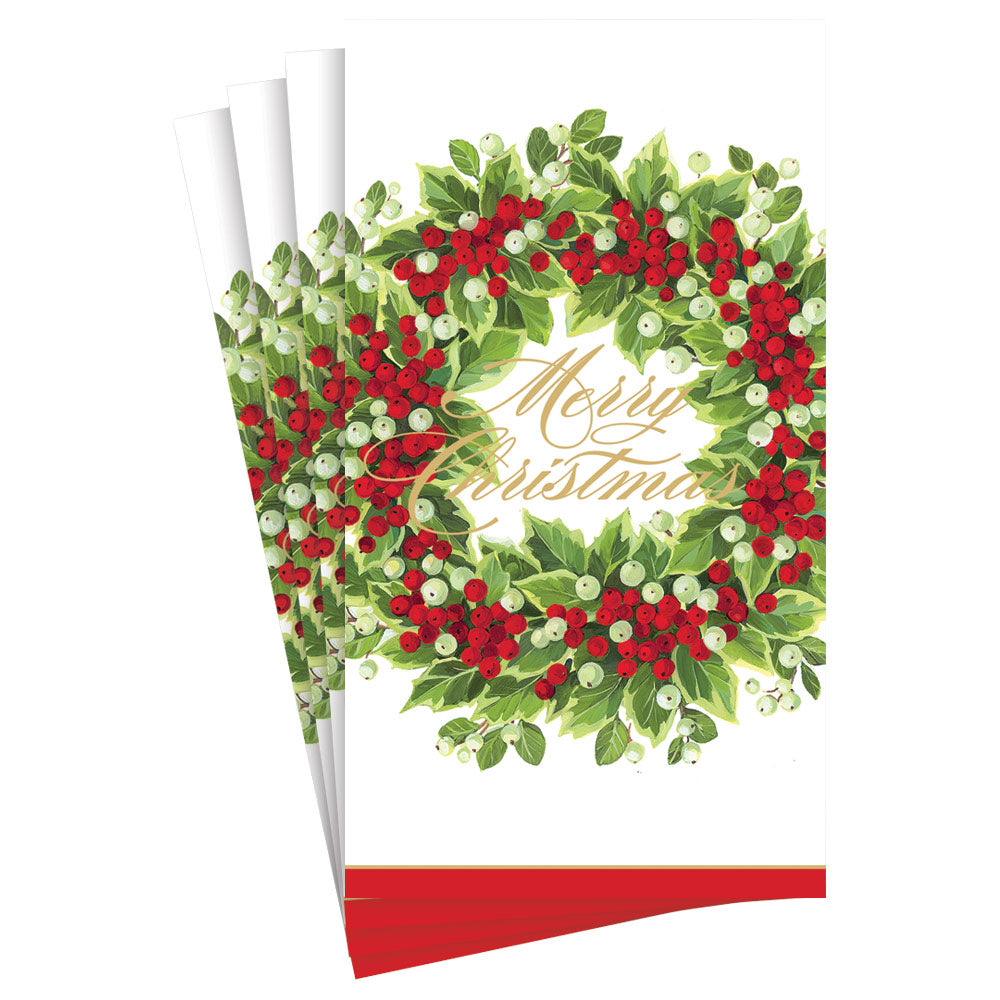 Holly And Berry Wreath Merry Cmas Guest Towel