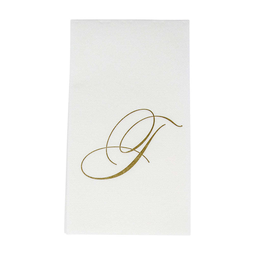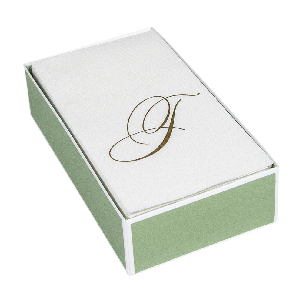 Caspari boxed Guest Towels make an excellent and useful gift item. Our Paper Linen material offers the look of linen, the feel of cloth, and the convenience of paper. Paper linen napkins are extra absorbent and durable, making them ideal for entertaining and everyday use. They are made of ultra-durable, linen-like airlaid paper and printed in Germany with non-toxic, water-based, food-safe ink. These napkins are made using environmentally-conscious raw materials, which ensures that they are both biodegradable and compostable. Our vibrant color options and beautiful designs elevate any occasion while your chosen initial adds a personalized touch. 24 napkins per box.