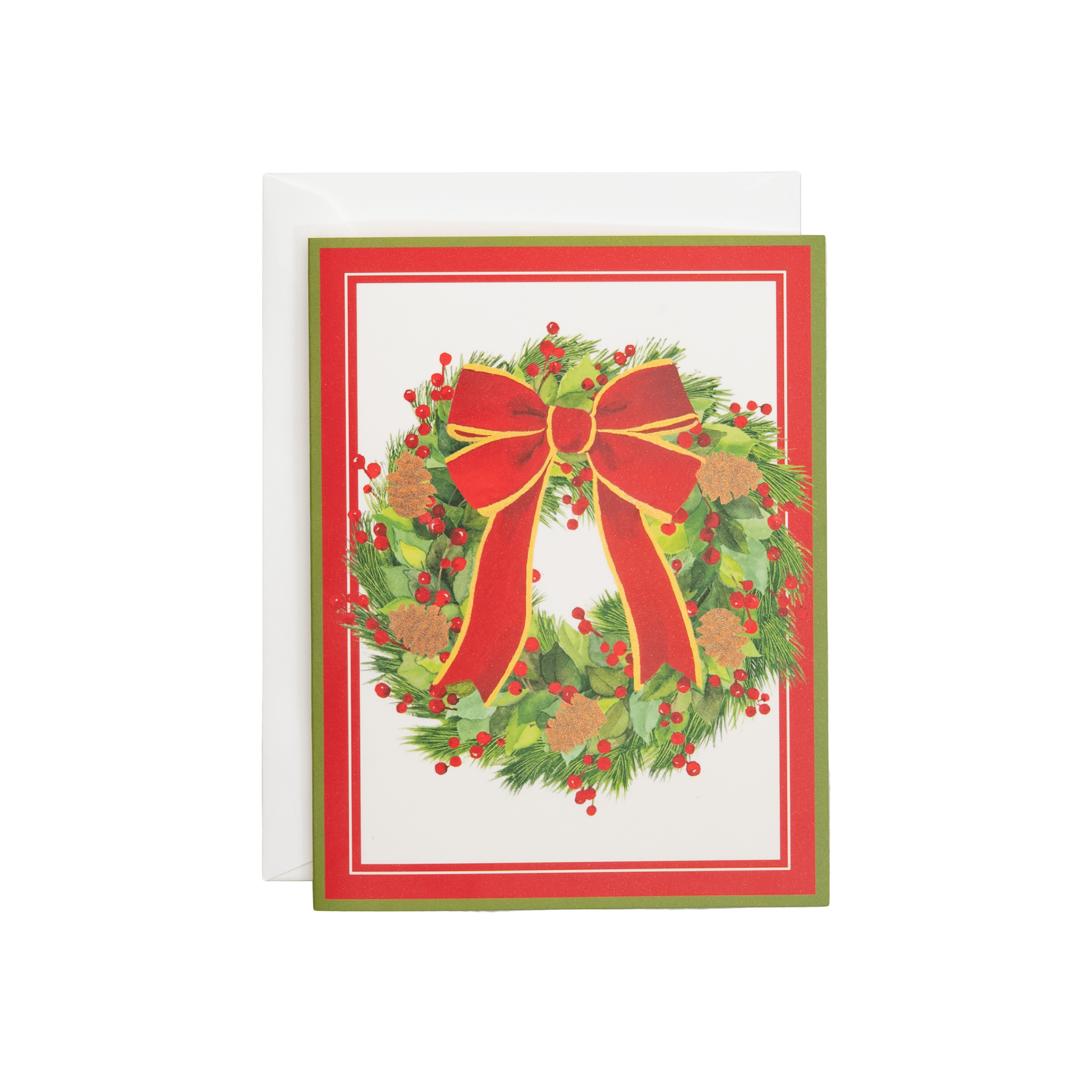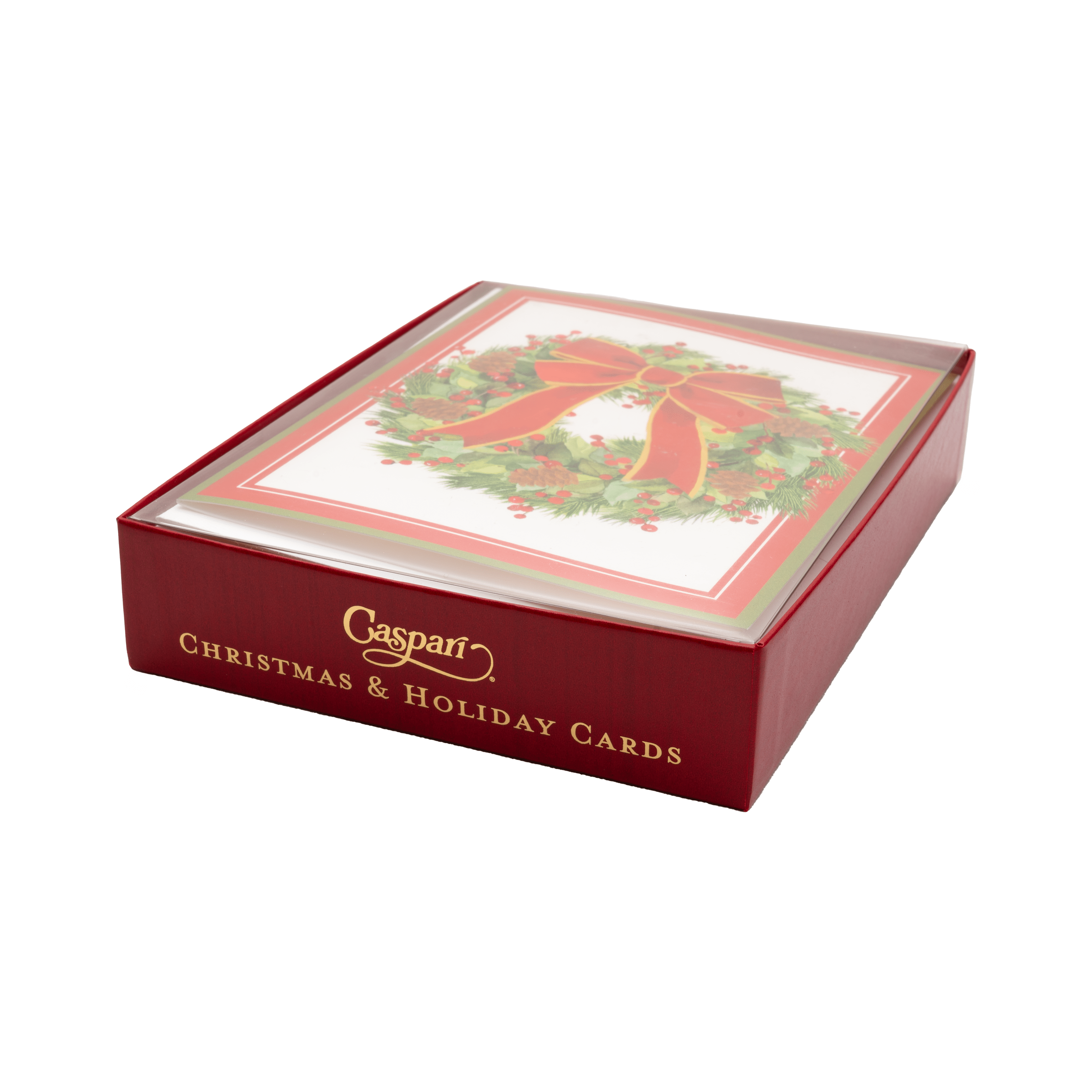 White Pine And Red Bow Wreath Classic Boxed Christmas Cards - includes 15 cards & envelopes