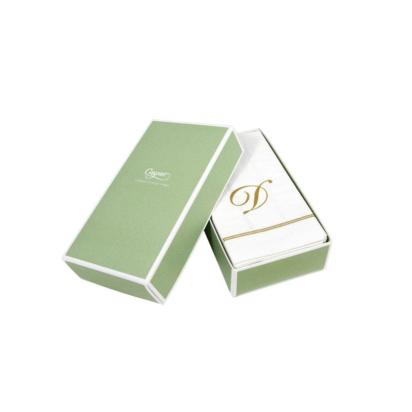 Caspari triple-ply napkins are both striking in design and durable in function. Thoughtfully designed to elevate any occasion, they feature artwork and designs from museums and artists around the world. Our initial design effortlessly adds a personal touch to your guest bath or table. Each is made of chlorine-free bleached triple-ply tissue and printed in Germany with non-toxic, water-based, food-safe ink. They are FSC-certified and made using environmentally-conscious raw materials, which ensures they are both biodegradable and compostable. Our napkins bring eco-friendly style and convenience to your tabletop. 15 initial napkins per package.