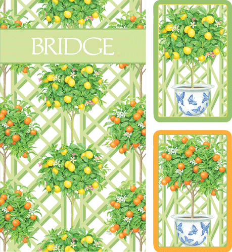 Bridge is a card game of advanced skill, which has origins dating back to the 19th and 20 centuries. Designed for group play, this game is played by four people in two pairs. A lovely accent for any room, bridge encourages conversation and friendly competition among new and old friends. Our beautiful Bridge Gift Sets feature artwork and designs created by artist and sourced from museums around the world. A perfect hostess, housewarming, or holiday gift, each set includes two sets of standard 52 card playing decks and two 39-page bridge score pads in coordinating designs. Each of the two card decks features a slightly different, but coordinating design. The entire set is packaged in a gold gift box making it easy to give.