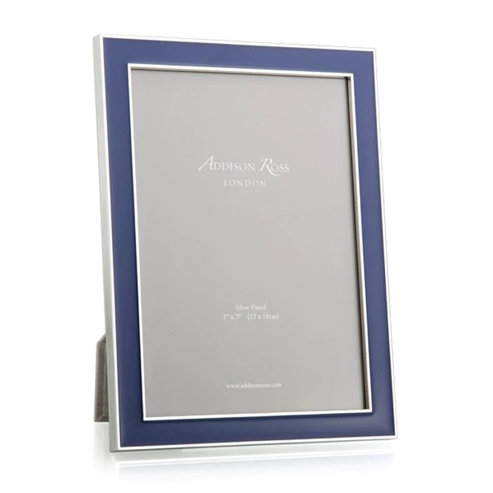 Elevate your cherished memories with this elegant navy blue enamel picture frame, measuring 5" x 7" and finished with sophisticated silver trim. Its rich navy enamel complements both black and white as well as color photos, blending seamlessly into classic or modern décors. The frame is backed with luxe dove grey velvet, adding a soft, refined touch that ensures your photos stand out beautifully. Perfect for showcasing treasured moments on any table, shelf, or wall, this frame combines stylish design with timeless appeal to enhance any space effortlessly.
