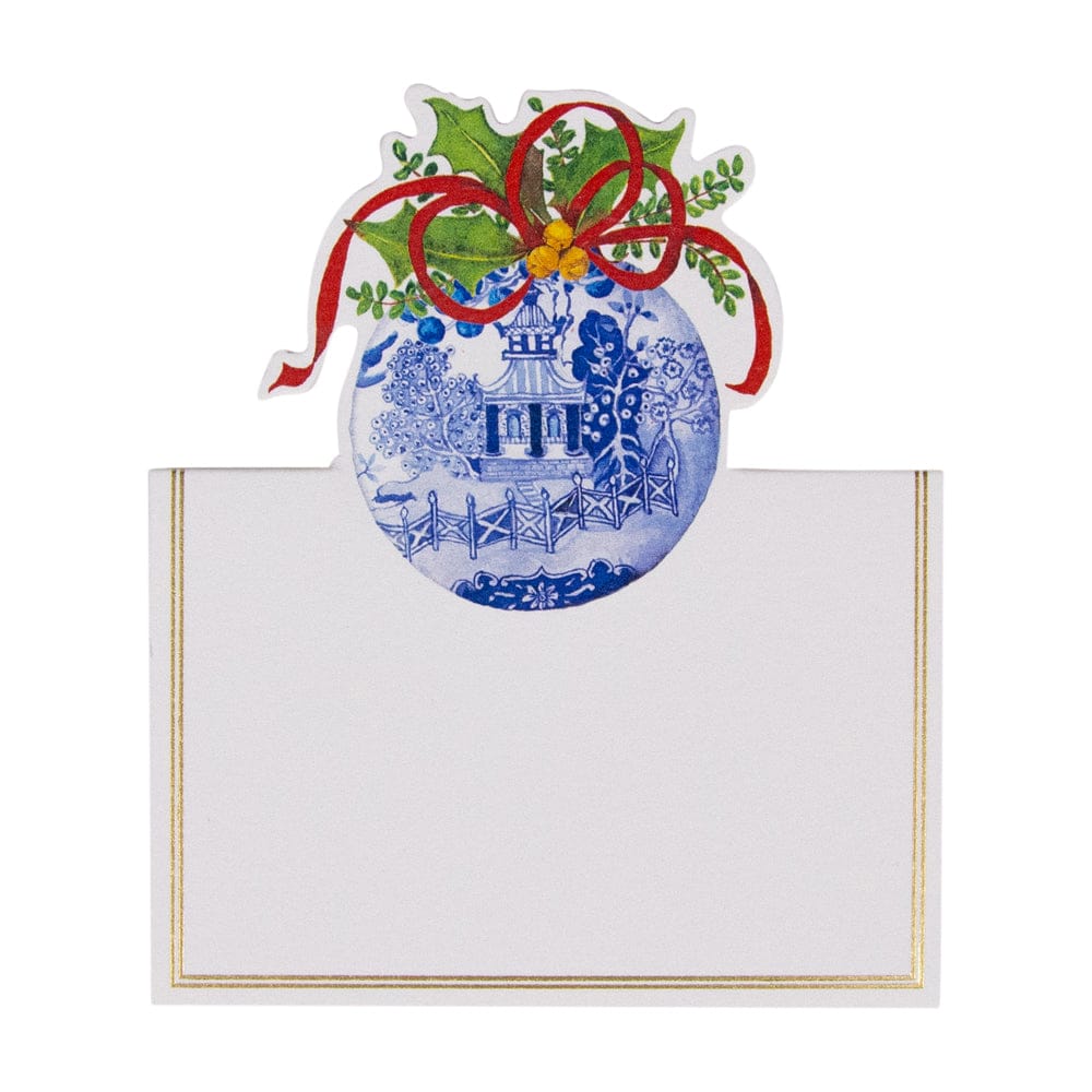 Blue And White Ornament Foil Place Card 8 In Die-Cut Foil