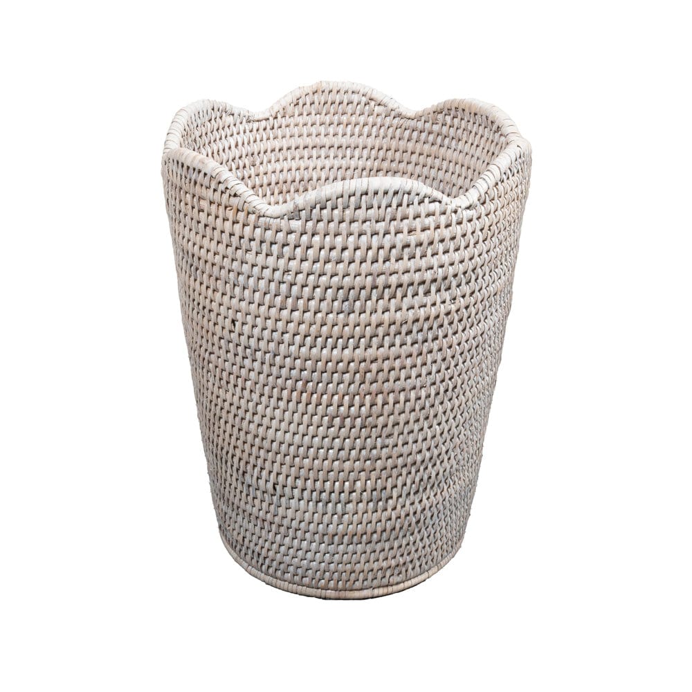 Rattan Scalloped Waste Basket in Cream - 12.5"H x 9.5" Diameter