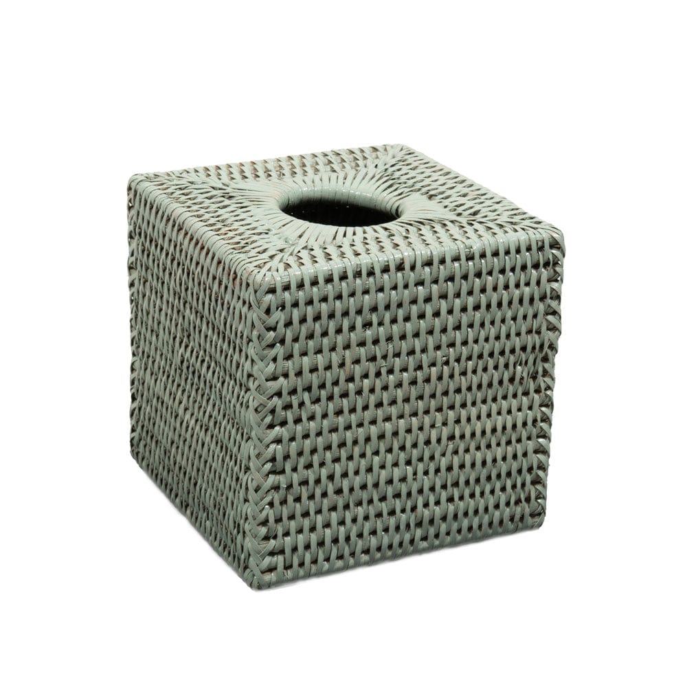 Rattan Square Tissue Box Cover in Green - 5.5"L x 5.5"W x 5.5"H