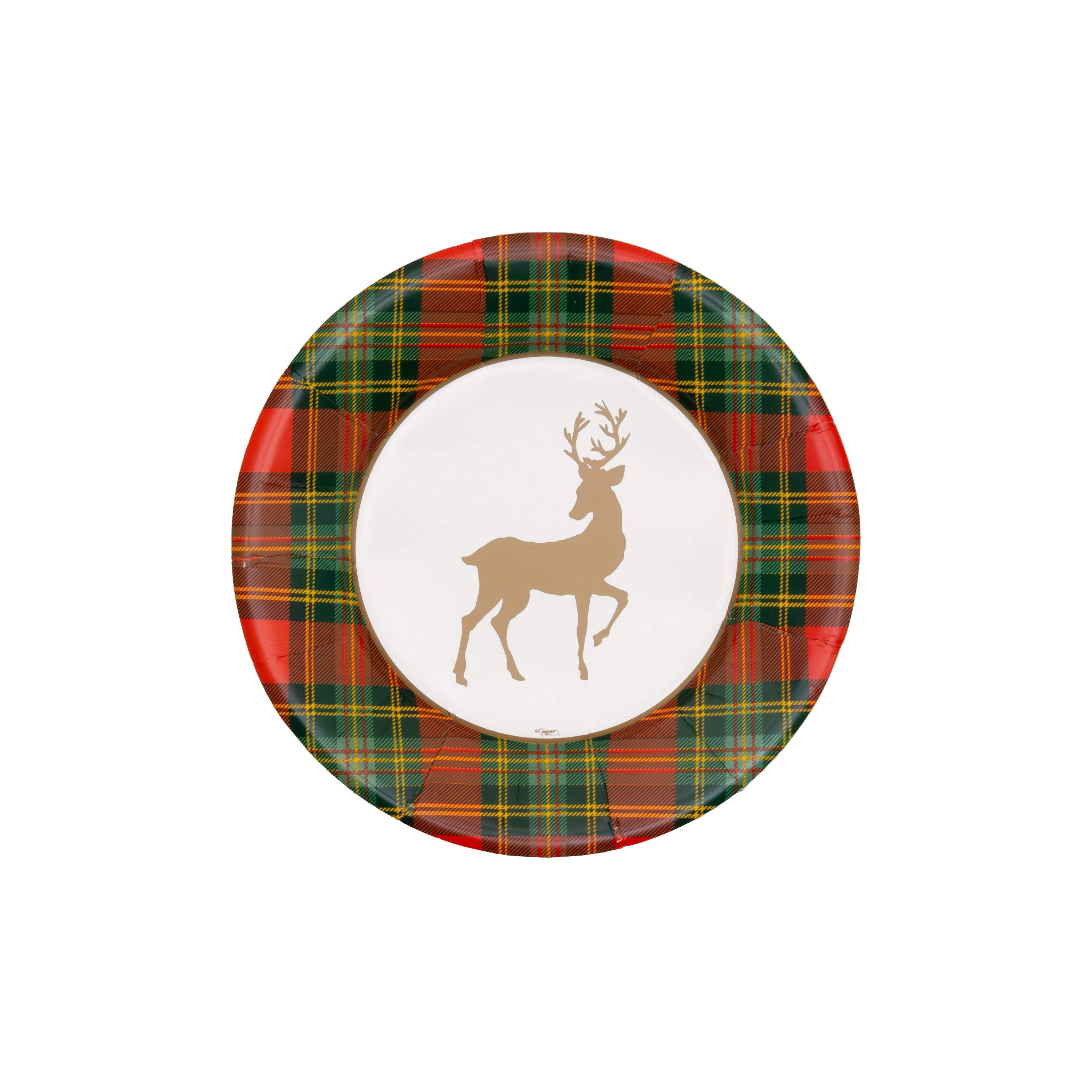 Reindeer Tartan Red Paper Salad & Dessert Plates - includes 8 Paper Salad & Dessert Plates
