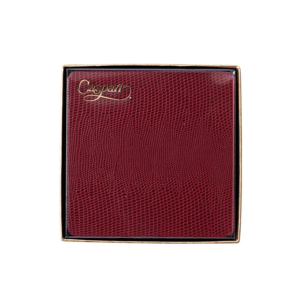 Caspari’s felt-backed Lizard Coasters are handcrafted in our own bindery in the United States and are a part of the Gallery Collection, which incorporates the same artisan skills used in centuries past to create beautiful and high-quality handmade goods. The top surfaces of our coasters are made from a durable, embossed faux leather with a felt backing. The sets are a lovely addition to any tabletop and keep your surfaces well protected. Eight coasters arrive in a gold box, which is perfect for gifting.