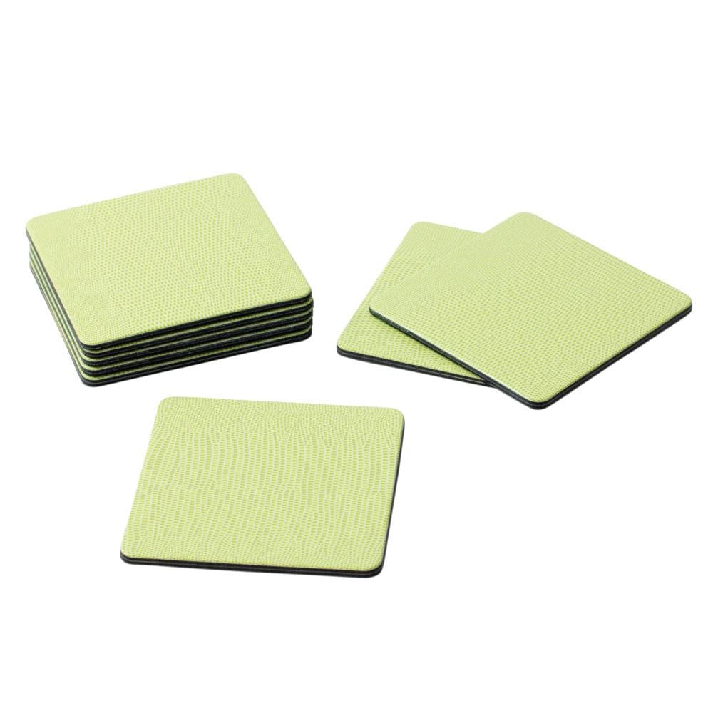 Caspari’s felt-backed Lizard Coasters are handcrafted in our own bindery in the United States and are a part of the Gallery Collection, which incorporates the same artisan skills used in centuries past to create beautiful and high-quality handmade goods. The top surfaces of our coasters are made from a durable, embossed faux leather with a felt backing. The sets are a lovely addition to any tabletop and keep your surfaces well protected. Eight coasters arrive in a gold box, which is perfect for gifting.