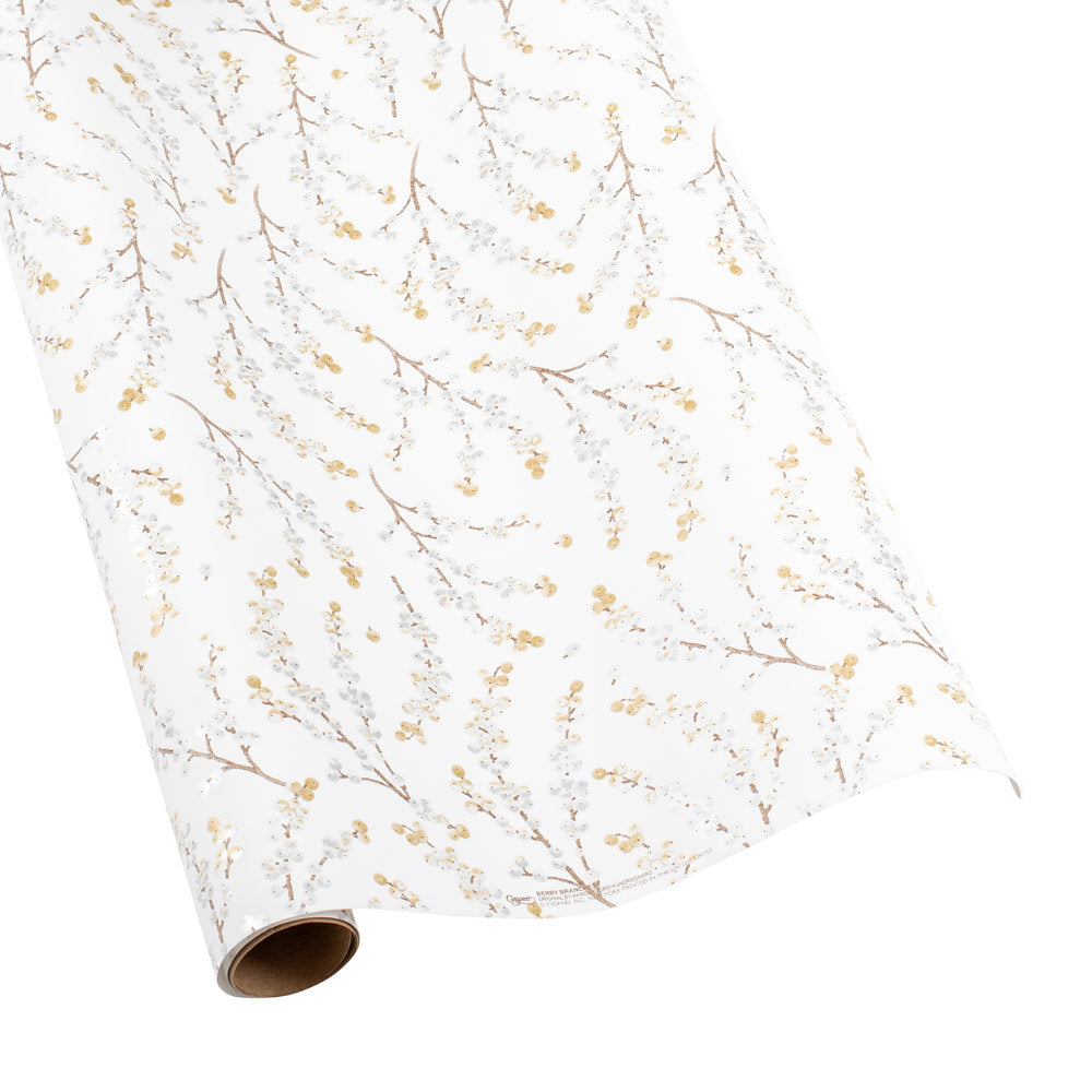 Berry Branches White/Silver Roll Wrap 30 Inch X 8Ft-2 Inch Core