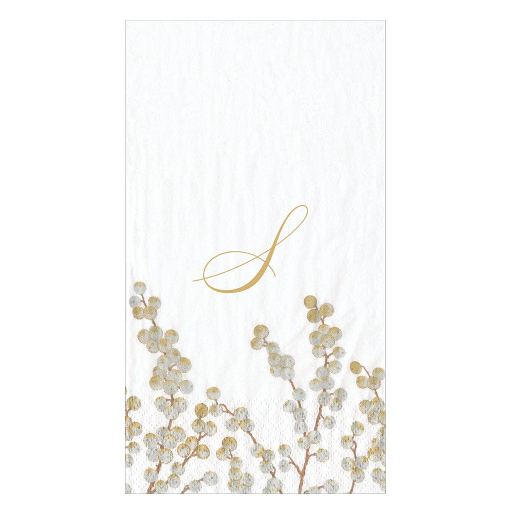 Berry Branches Wht/Silver Initial S Guest Towel W/Initial