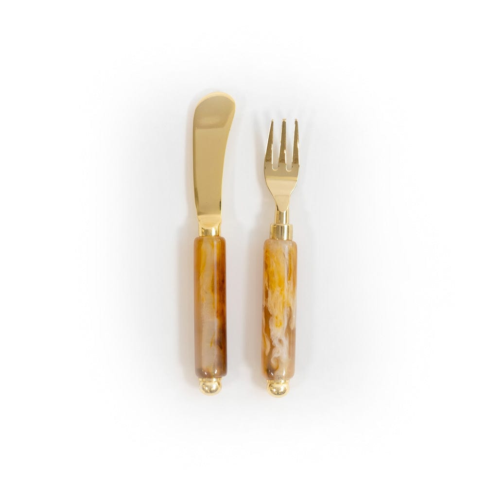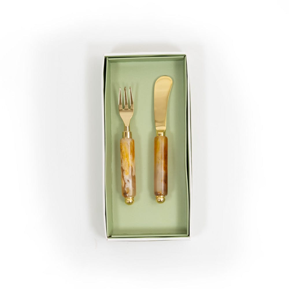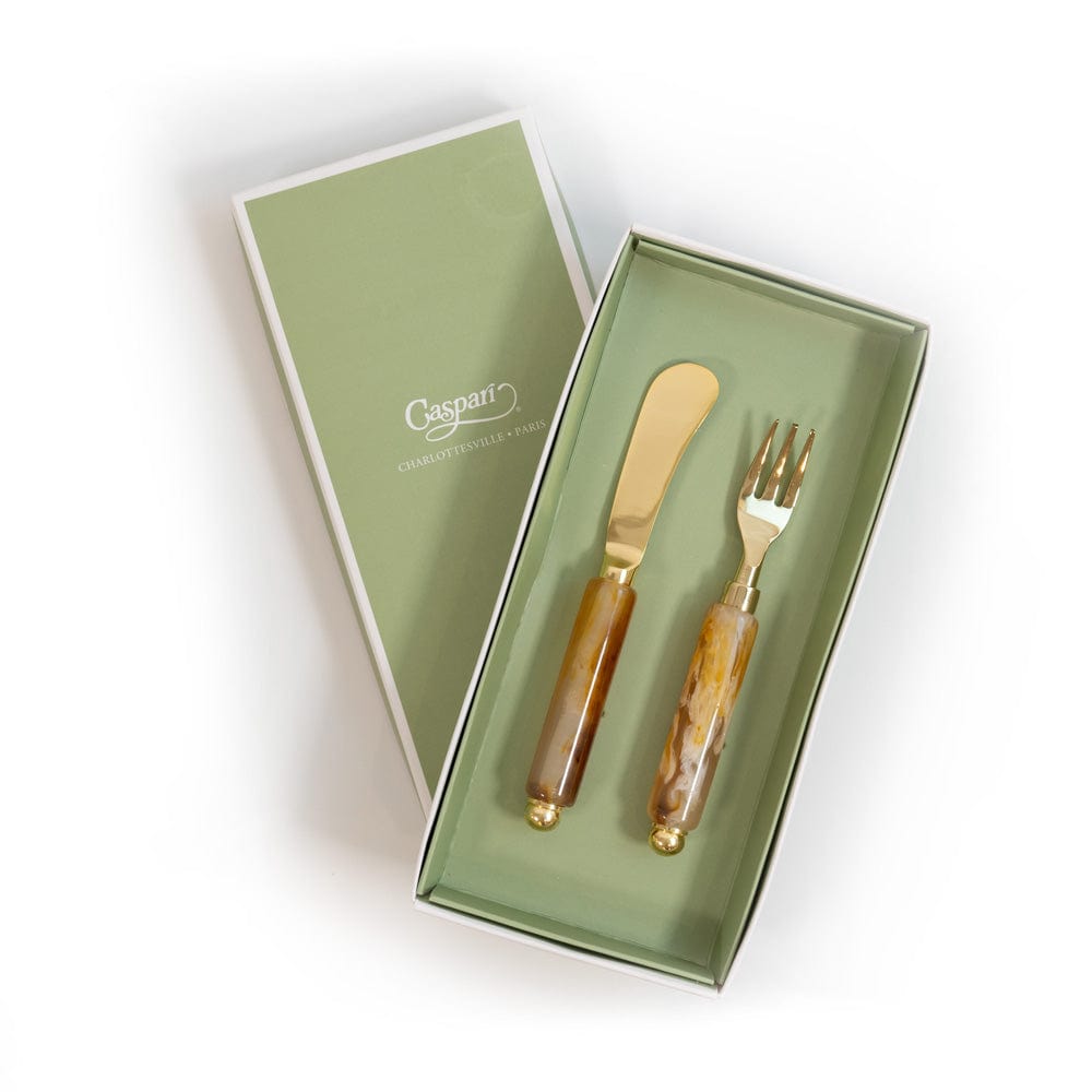 Our Spreader & Hors d'oeuvre Fork set makes a handsome accent to any charcuterie board or appetizer spread. Packaged in Caspari's signature sage green gift box, pair the set with cocktail napkins and a bottle of wine for the perfect hostess gift.