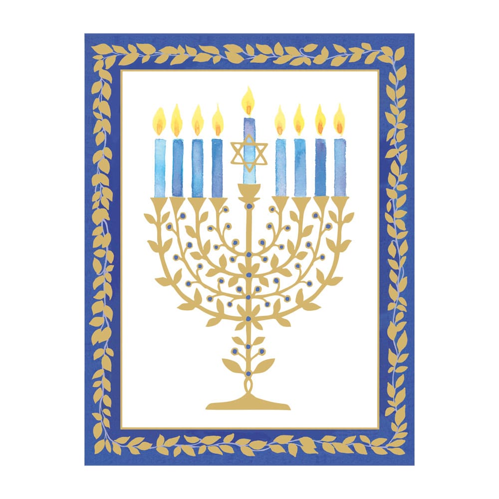 Gold Leaves Menorah Foil Classic Boxed Christmas Cards - includes 10 cards & envelopes
