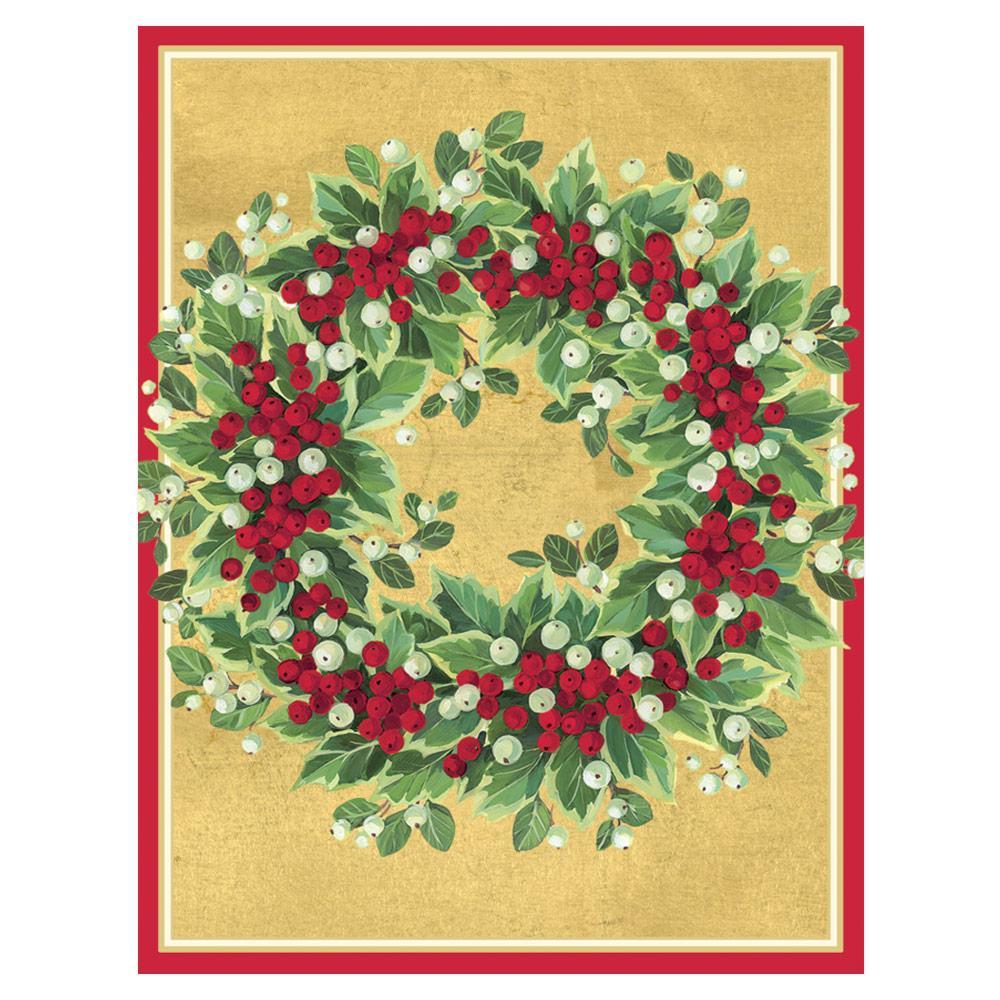 Holly And Berry Wreath Classic Boxed Christmas Cards - includes 15 cards & envelopes