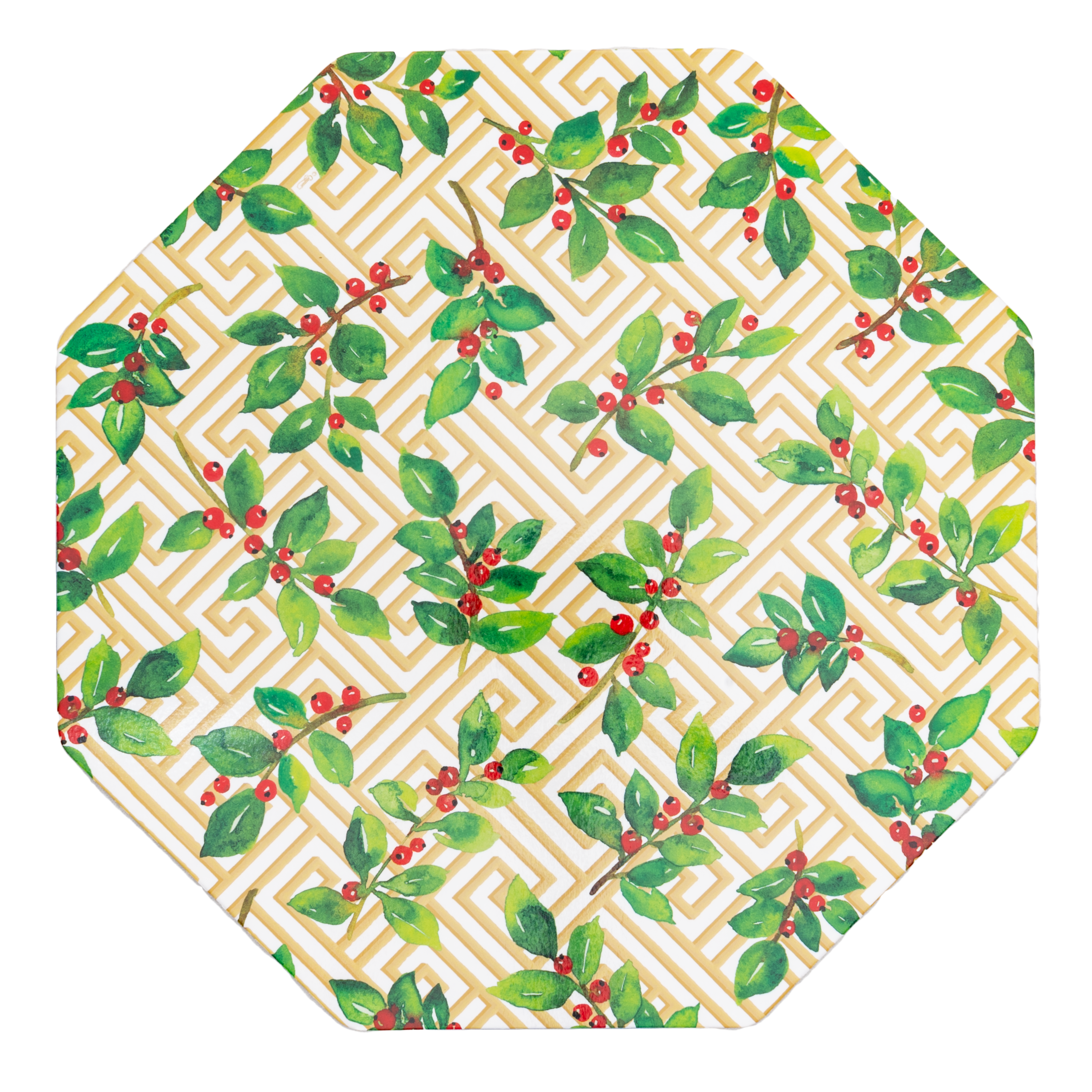 Holly And Fretwork Hardback Placemat - 1 count