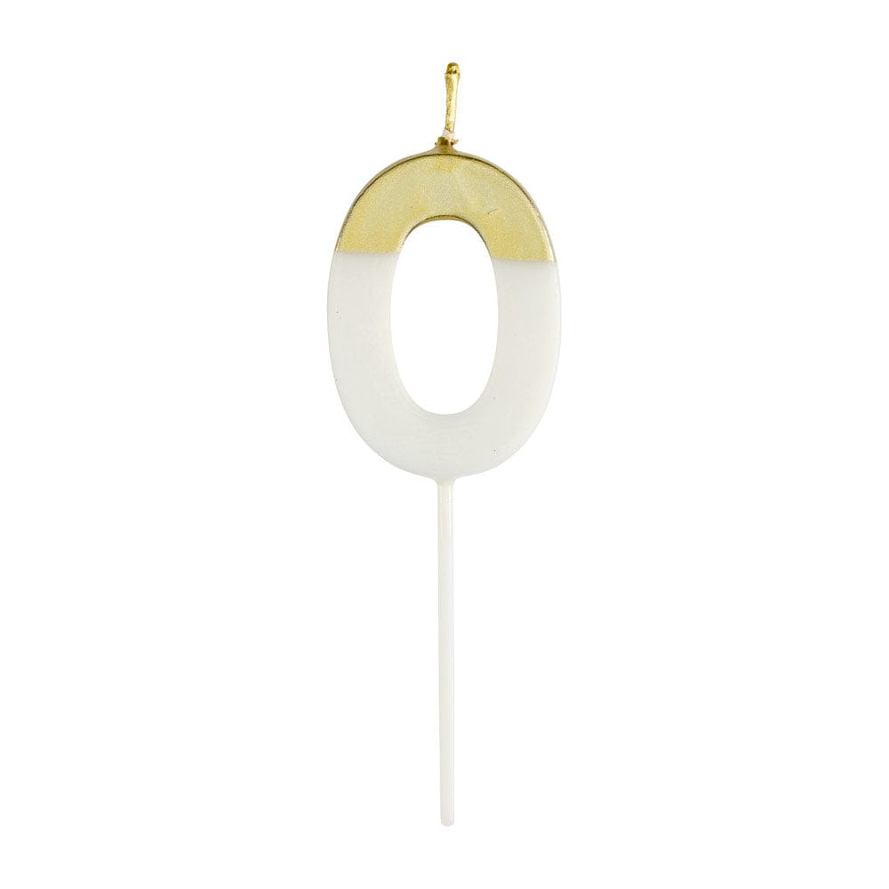 Number Candle 0 - White/Gold Candle Birthday Number