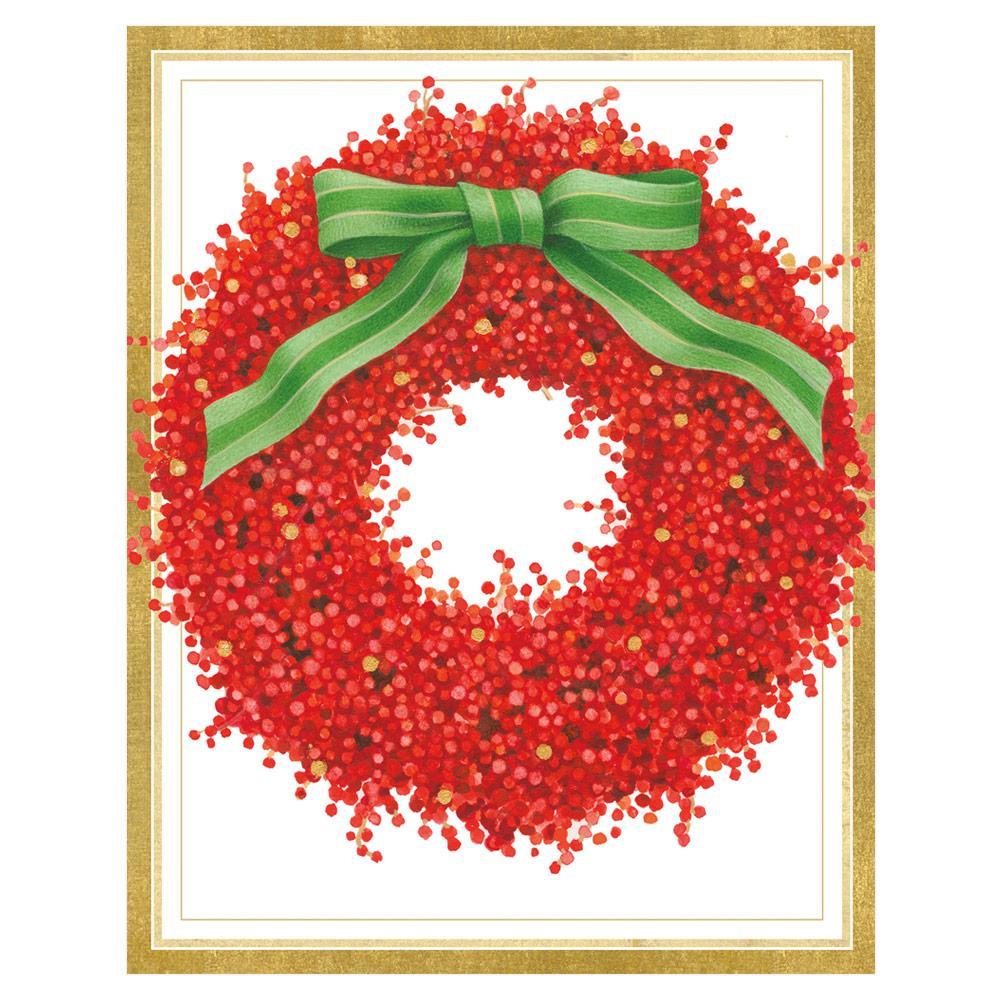 Red Berry Wreath Petite Boxed Christmas Cards - includes 15 cards & envelopes