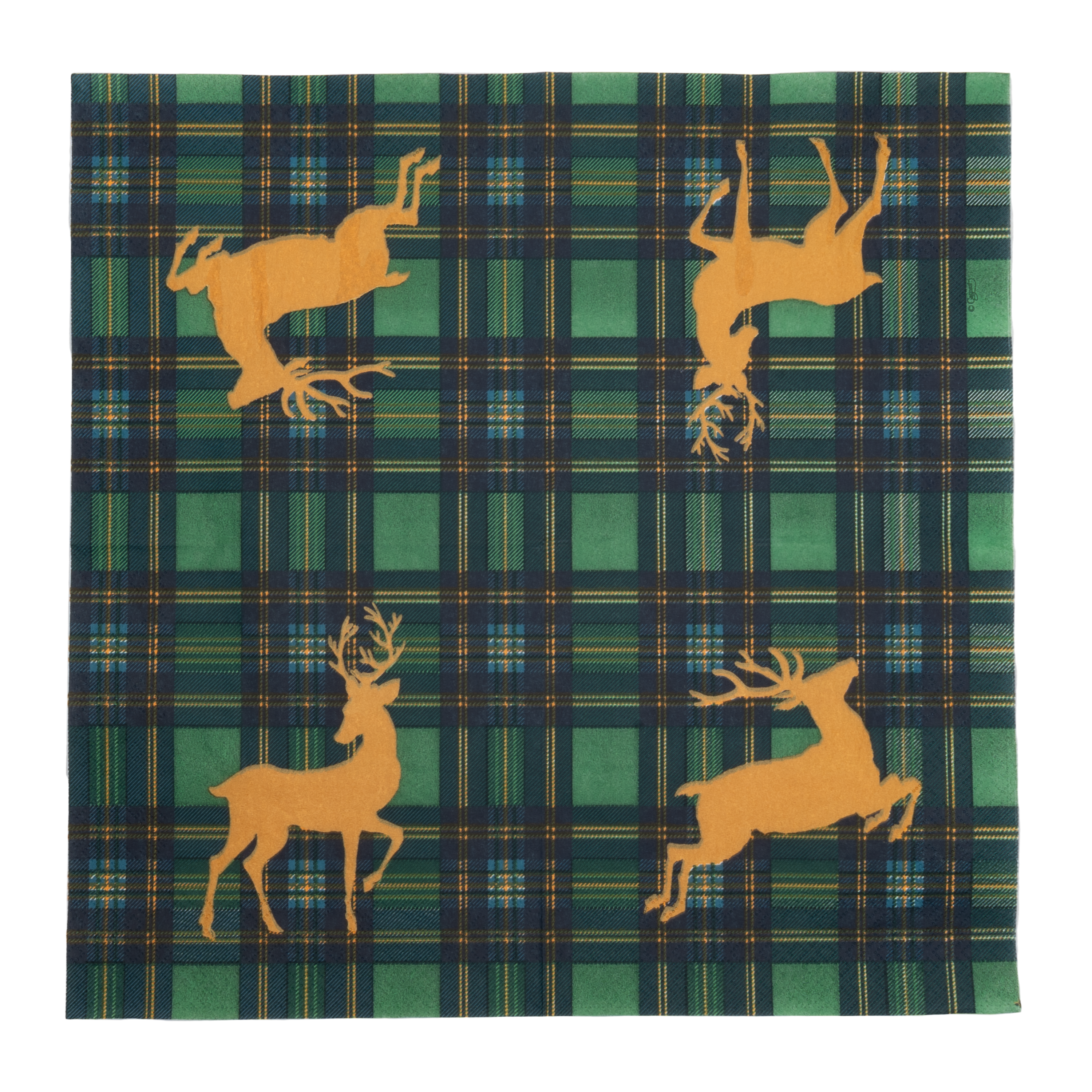 Reindeer Tartan Green Luncheon Napkins - includes 20 Luncheon Napkins