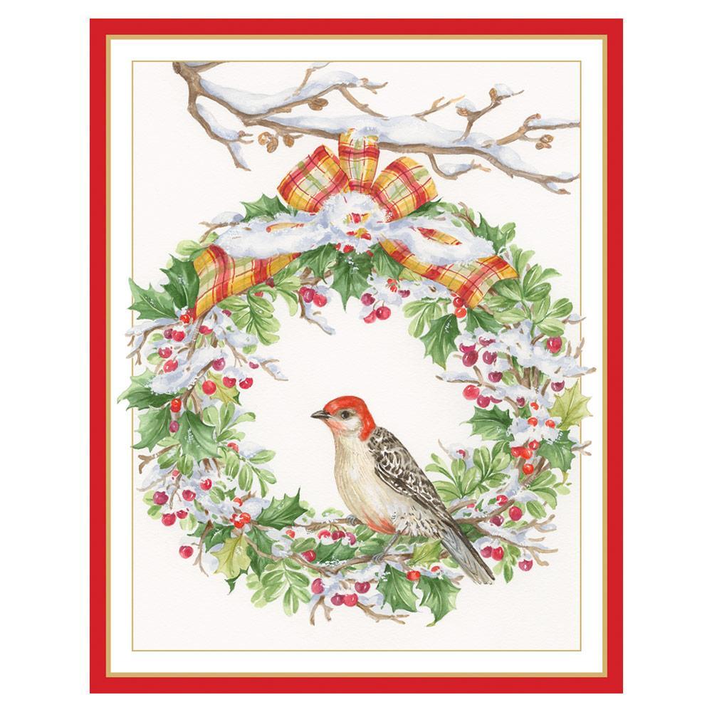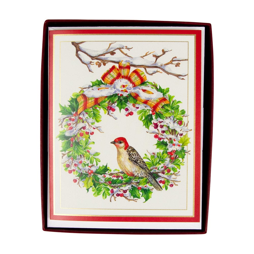 Wreath And Woodpecker Petite Boxed Christmas Cards - includes 15 cards & envelopes